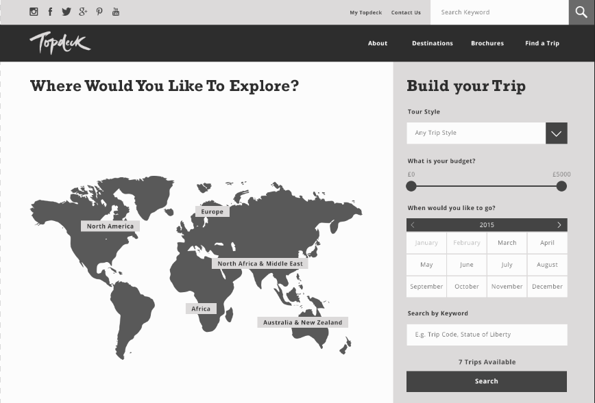 I started working on what would go beneath the deals - travel inspo. This would be ideal for people who didn't know where they wanted to go yet and are open minded to what is available to them/what Topdeck recommends